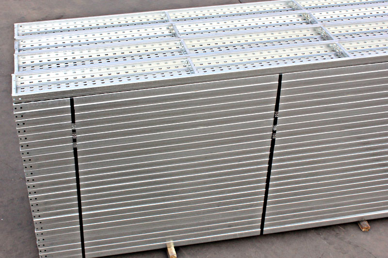 在施工場地,我們經常看到一些金屬跳板,也就是鋼跳板,俗稱腳手架板。 施工人員在上面行走及搬運材料用的輔助器材。這些鋼跳板上有很多孔。 這些孔它的作用是很廣泛的 A. 可以排水,雨天施工不積水。 B. 冬天施工防滑,安全得到保障。 C. 防結砂,有效防止堆積砂子。鋼跳板在船廠噴砂房很受歡迎。 D. 鋼跳板之間的鏈接。鋼筋或鐵絲固定,方便牢固。 在使用鋼跳板施工時,搭建腳手架的鋼管可適當減少
